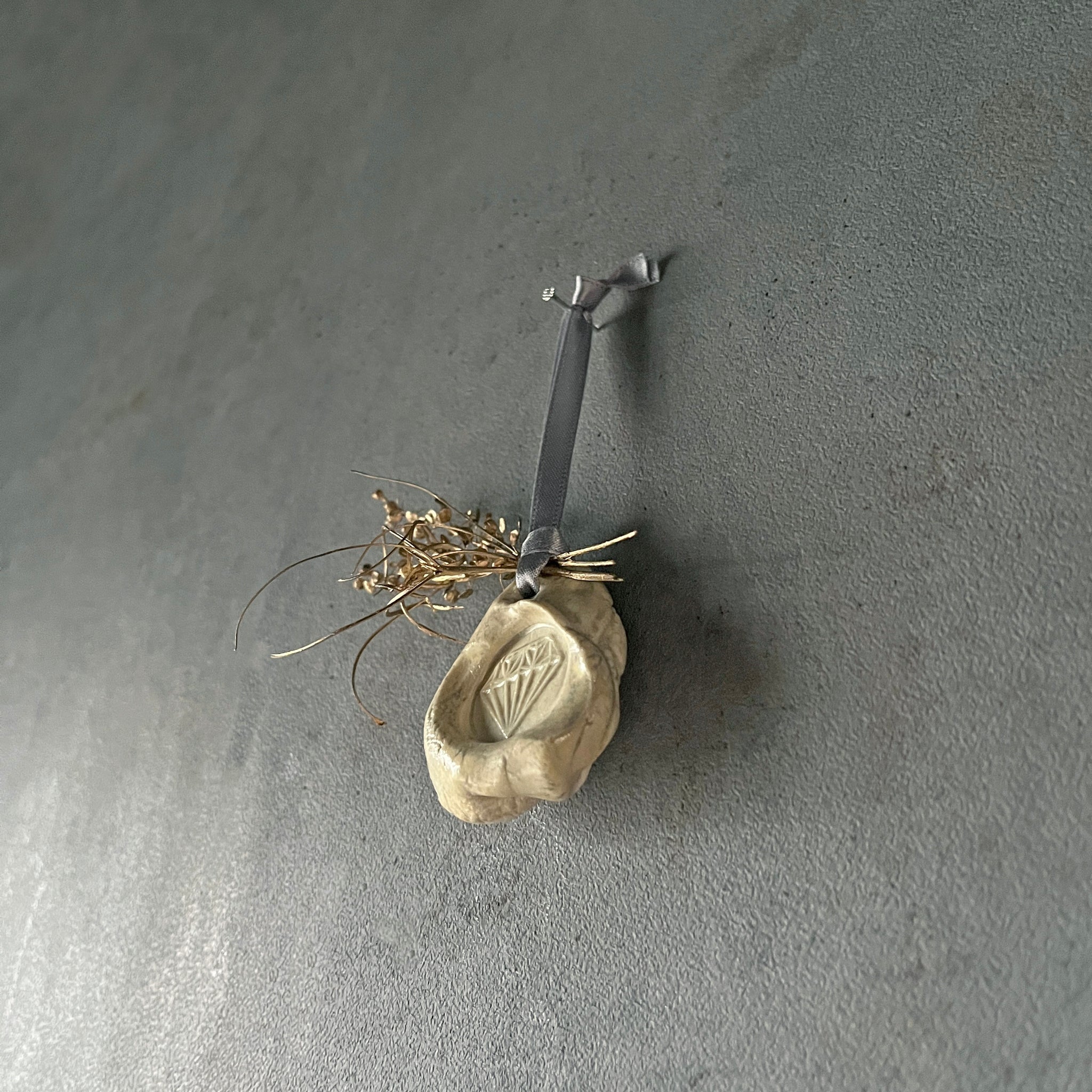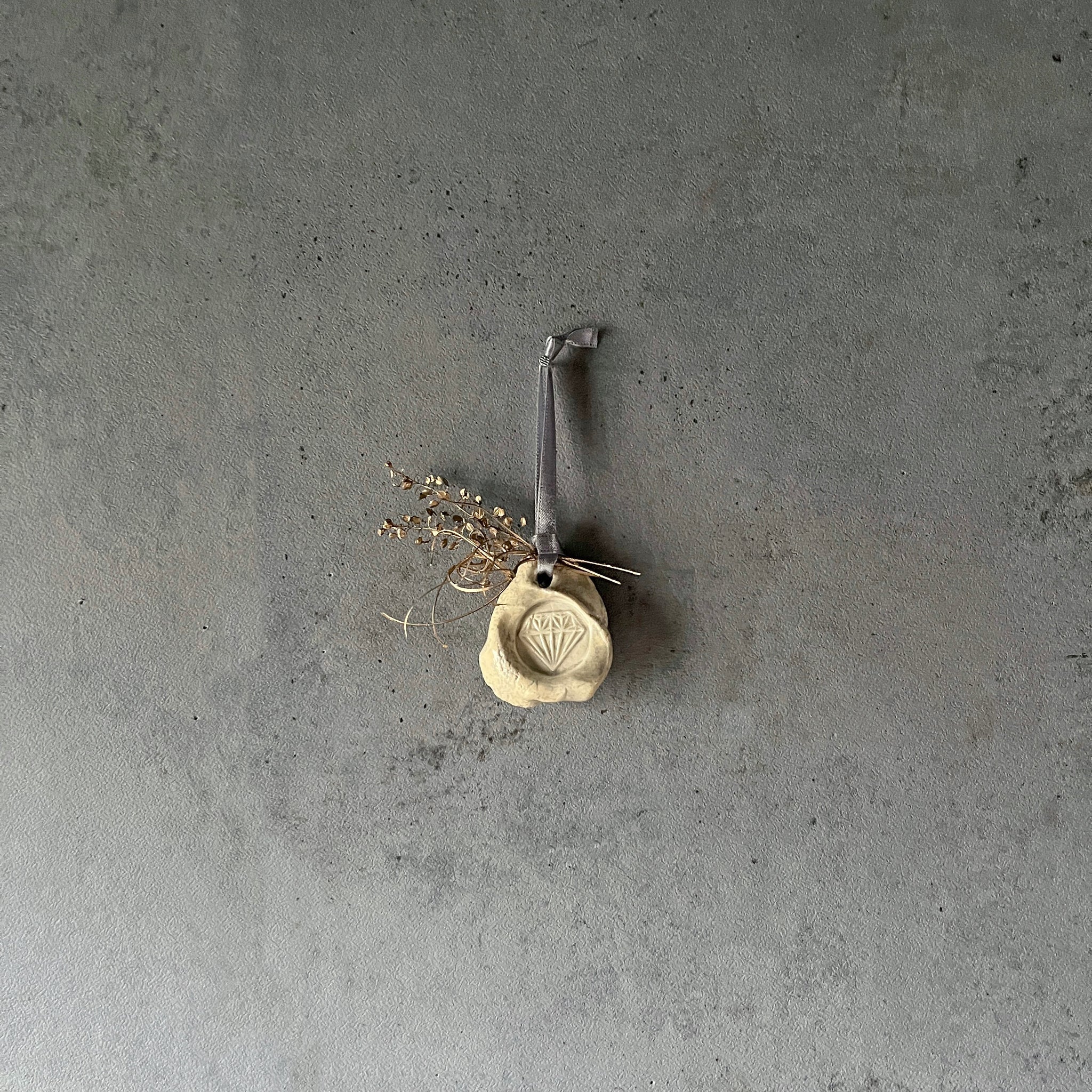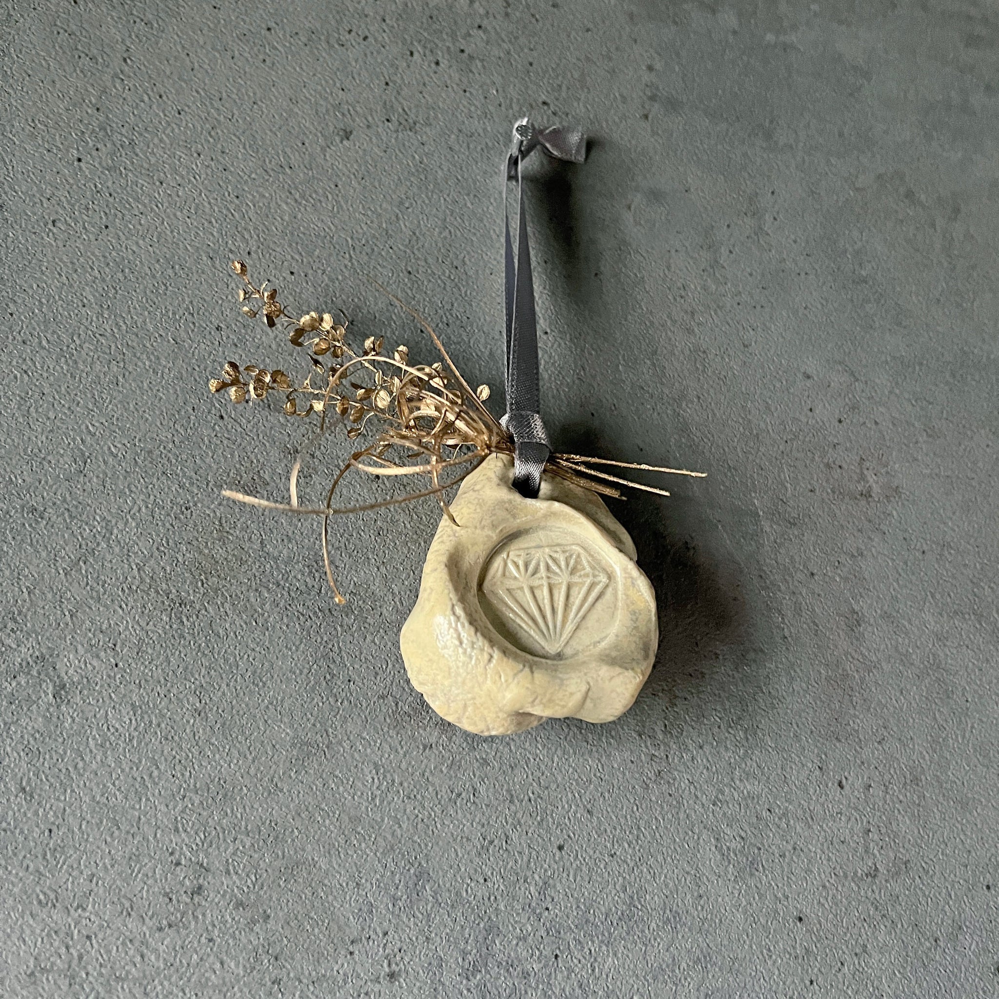 ひとつひとつにダイアモンドの型押しシーリングをした、セラミックオーナメント。