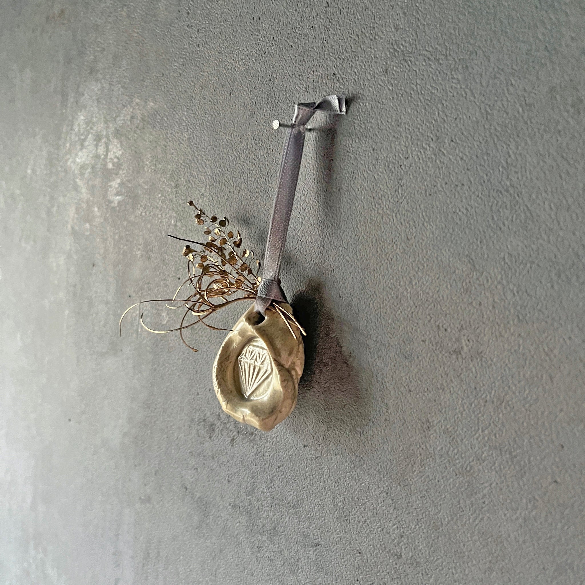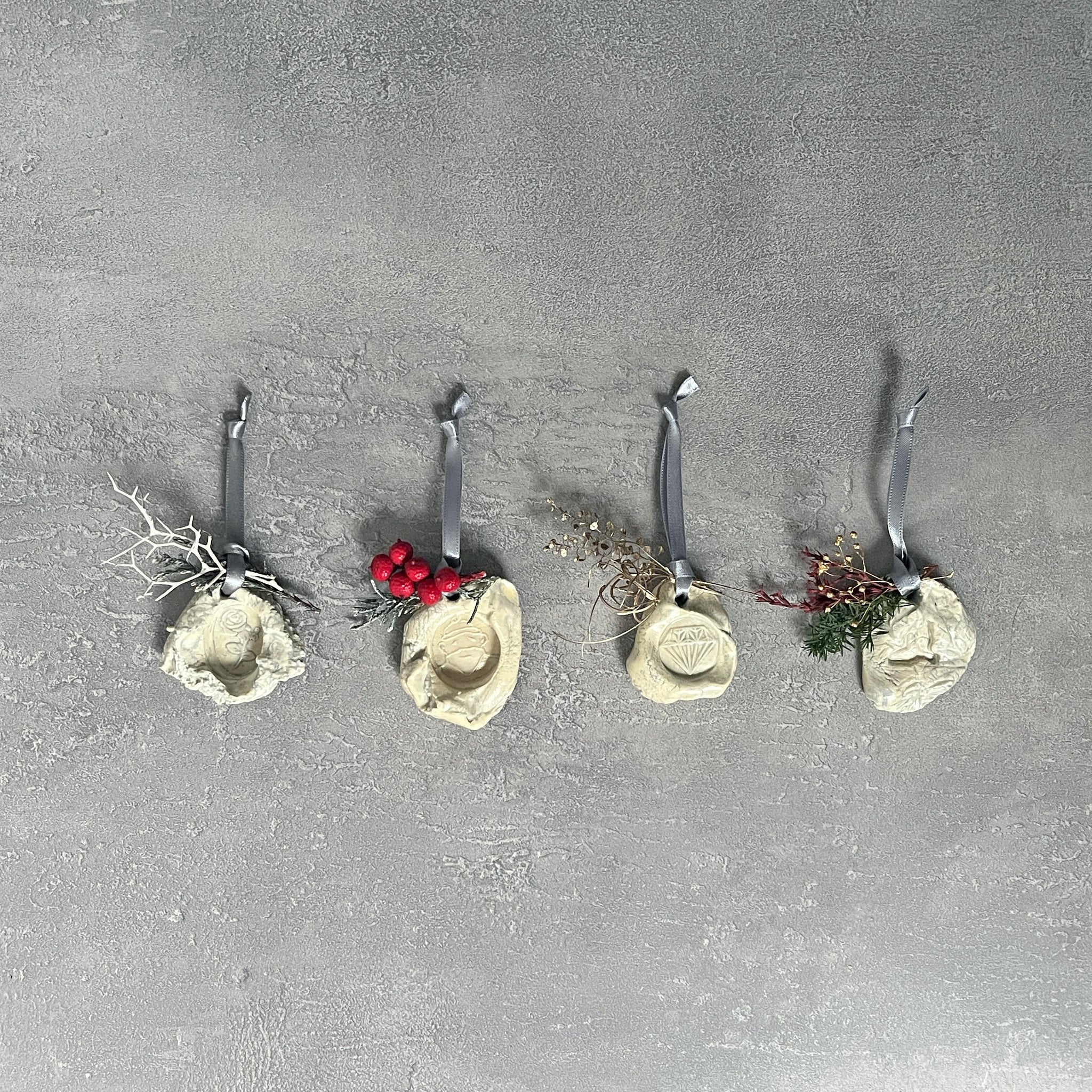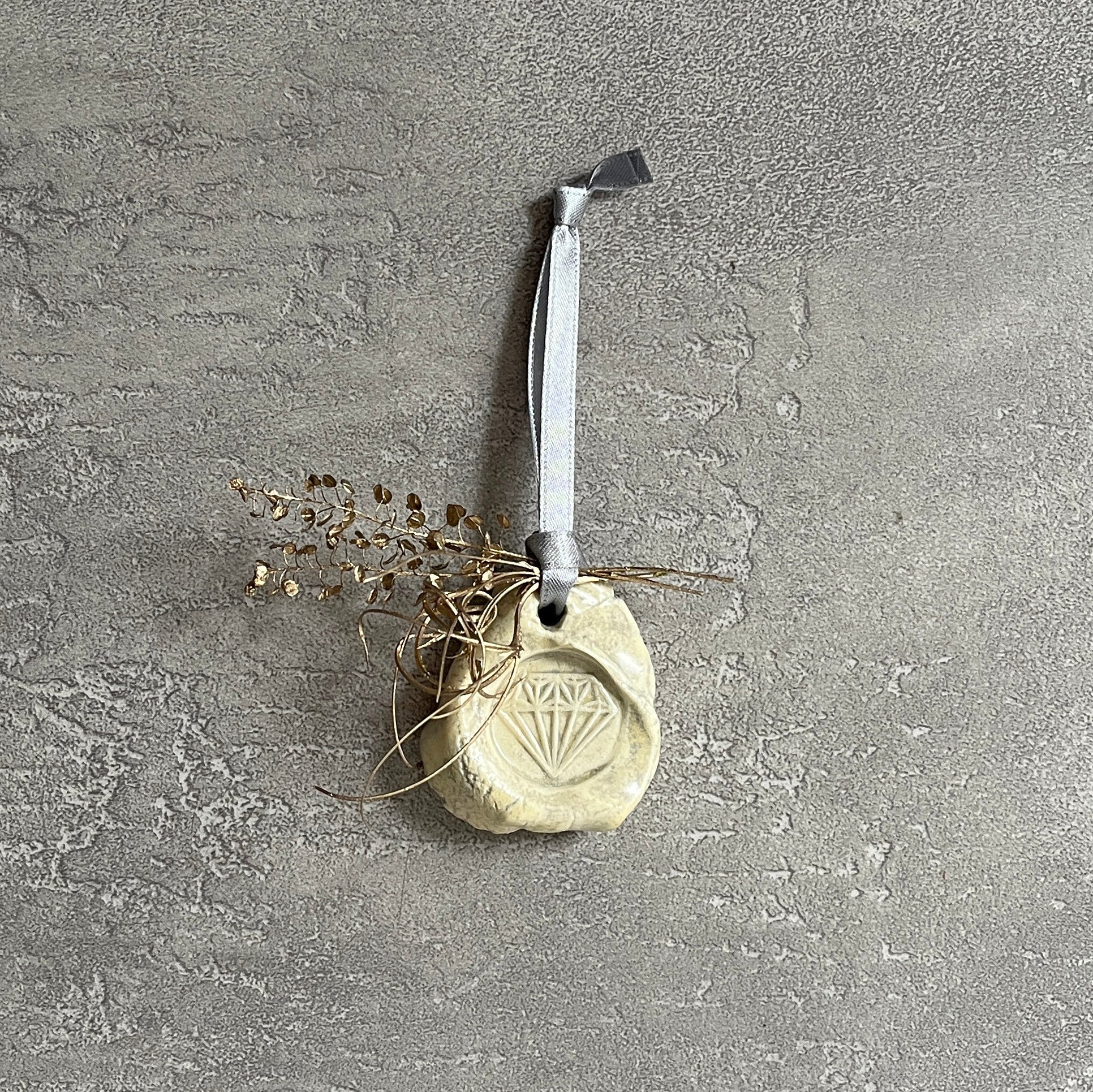 ひとつひとつにダイアモンドの型押しシーリングをした、セラミックオーナメント。