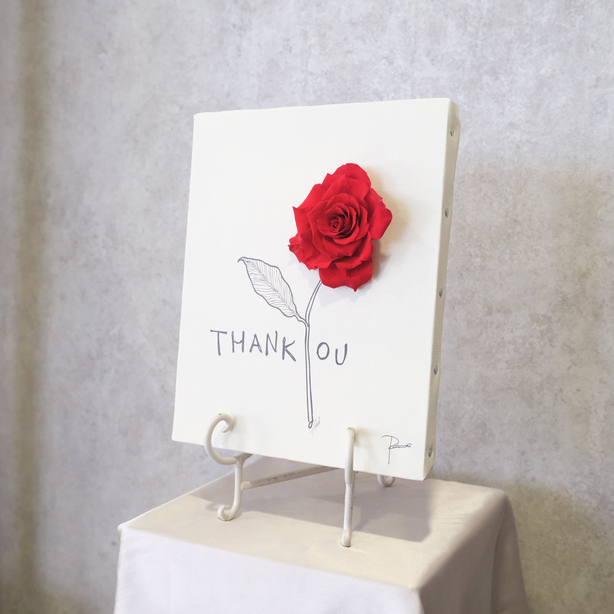 花という手紙を贈る。新たな花贈りのカタチ。 壁に立てかけたり、イーゼルや額に飾ってお花を楽しめます。