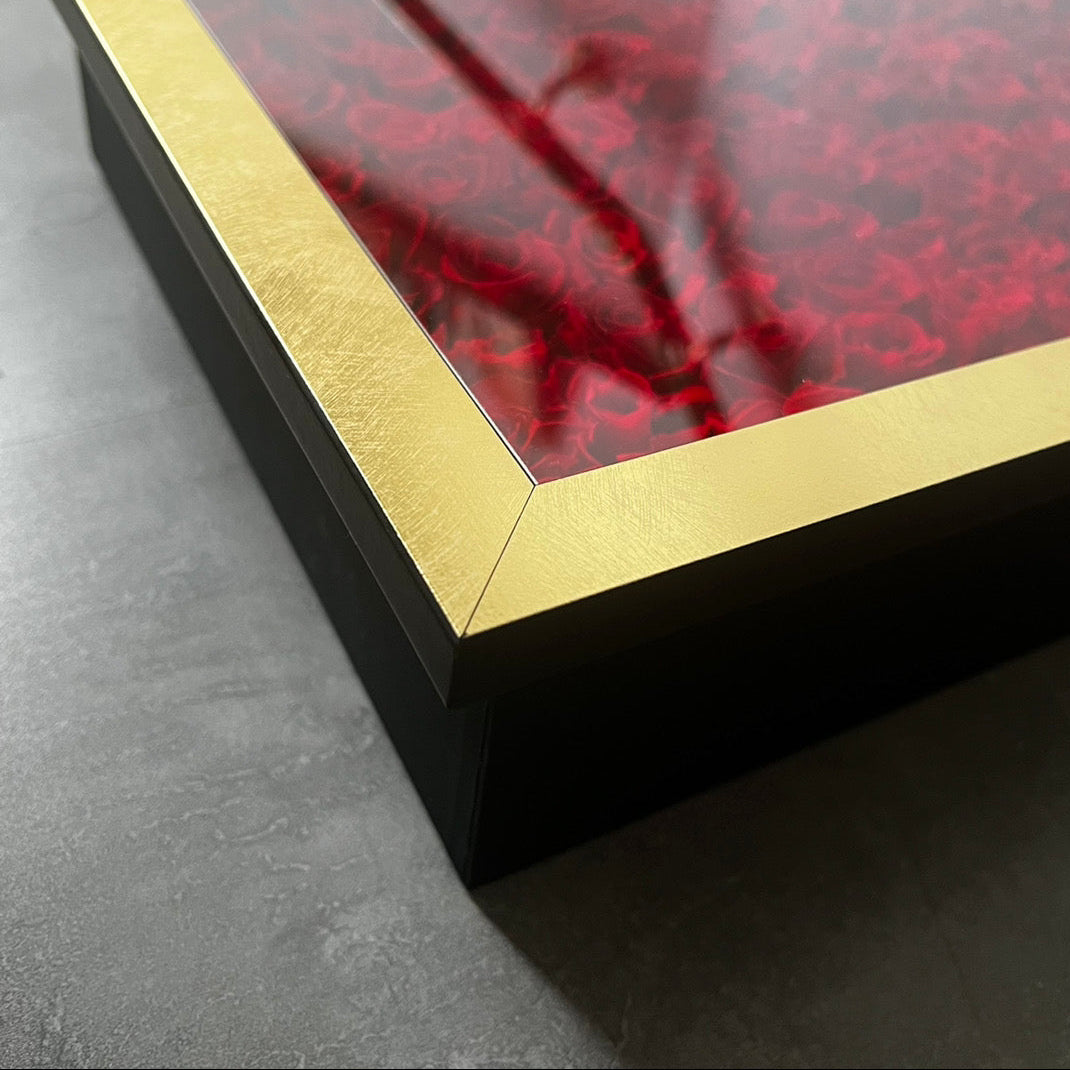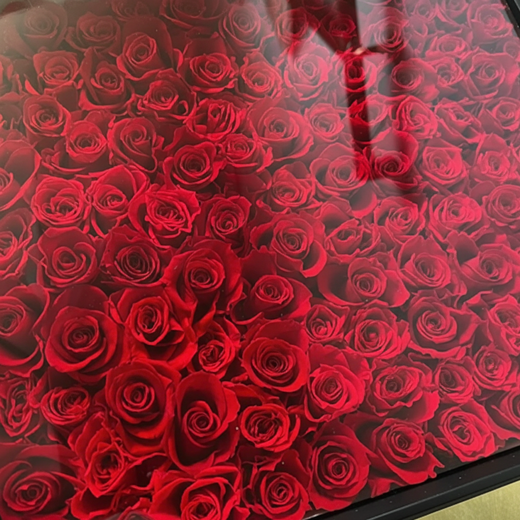 特別な日に贈られた108本の薔薇ブーケを、美しい額縁アレンジに生まれ変わらせるリメイクサービス。
