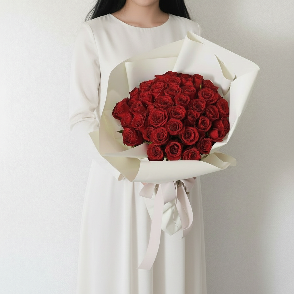 50本という豊かな本数は、「あなたに出会えた奇跡」や「永遠の愛」を表現するのにぴったり。新鮮な生花ならではの芳醇な香りと、柔らかな花びらの質感が、受け取った瞬間に心を満たします。